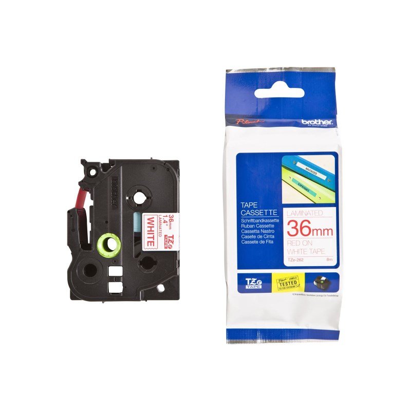 Kazeta se standardní laminovanou páskou vhodnou pro denní použití v průmyslové výrobě, skladech, kancelářích apod. Páska je vysoce odolná proti teplotním vlivům, poškrábání, slunečnímu záření a díky tomu je zaručena ochrana vytištěného textu.