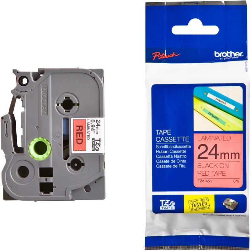 Kazeta se standardní laminovanou páskou vhodnou pro denní použití v průmyslové výrobě, skladech, kancelářích apod. Páska je vysoce odolná proti teplotním vlivům, poškrábání, slunečnímu záření a díky tomu je zaručena ochrana vytištěného textu.