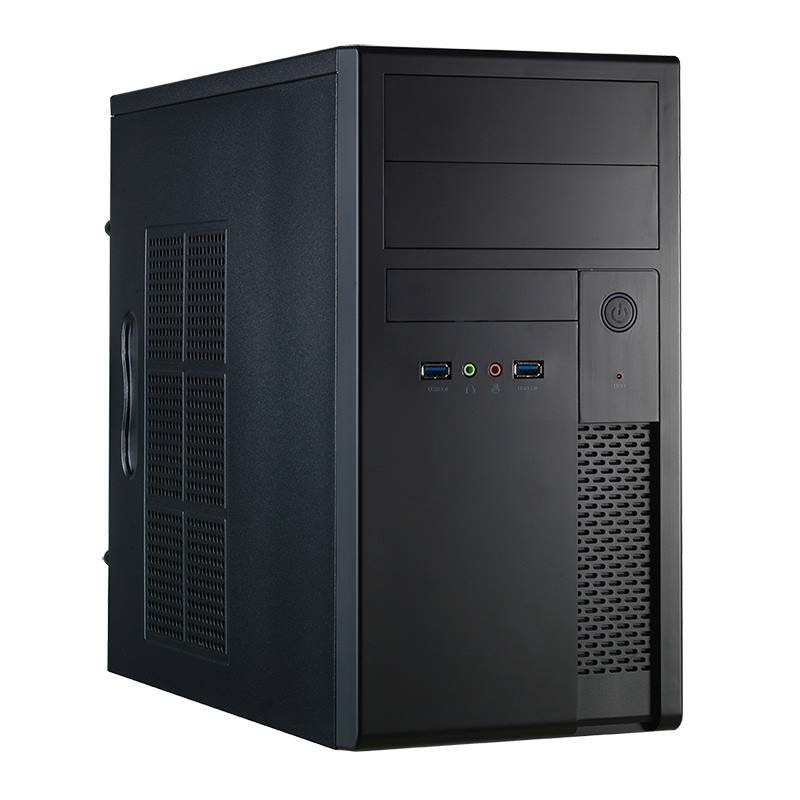 Černá skříň formátu Mini Tower pro montáž základní desky typu mATX. Na předním panelu naleznete 2 USB 3.0 porty, konektor pro sluchátka a pro mikrofon. Skříň je dodávána se zdrojem o výkonu 350 W.