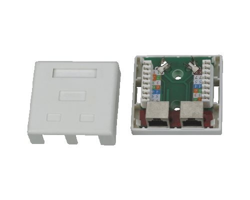 Datová zásuvka nabízí dva stíněné porty RJ45. Zásuvka je určena k montáži na omítku.