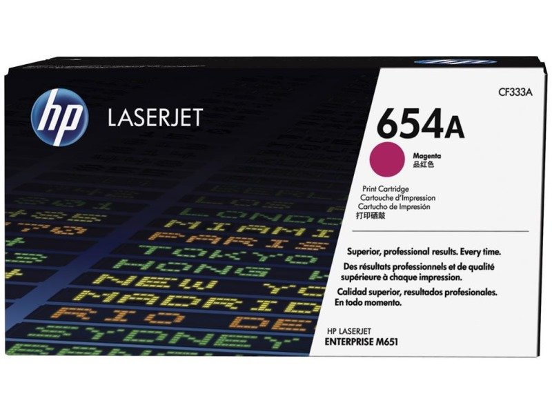 HP 654A (CF333A) ZÁKLADNÍ SPECIFIKACE Pro tiskárny: HP Color LaserJet Enterprise M651dn, M651n, M651xh Barva: purpurová Výdrž: 15000 stran