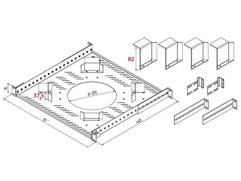2 x držák na středovou vertikálu pro 19" příslušenství