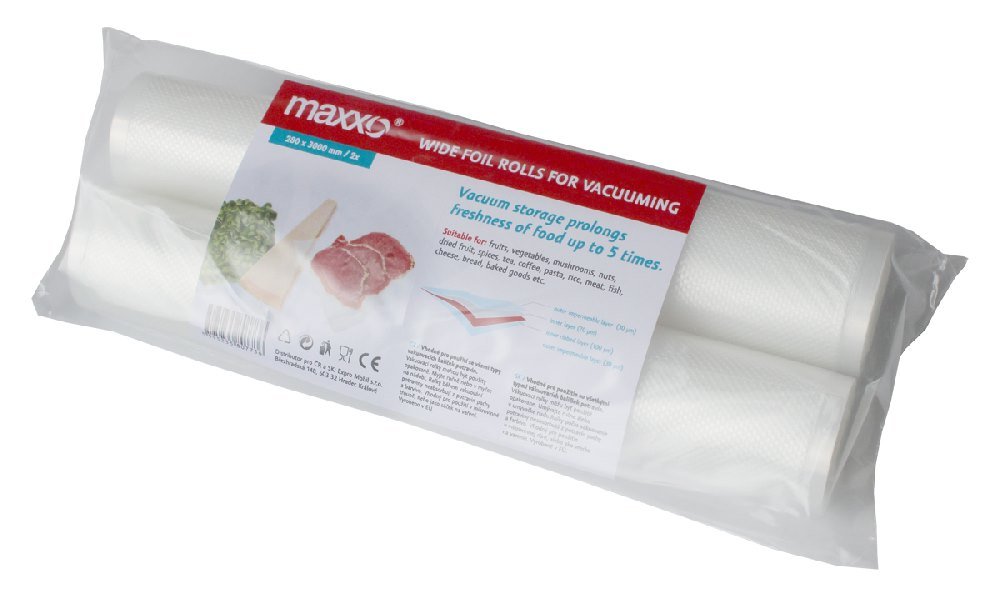 Maxxo náhradní rolky do baliček 2 ks 2 kusy náhradních roliček určených do vakuovacích baliček potravin. ZÁKLADNÍ SPECIFIKACE Šířka: 28 cm Délka: 300 cm Počet kusů v balení: 2