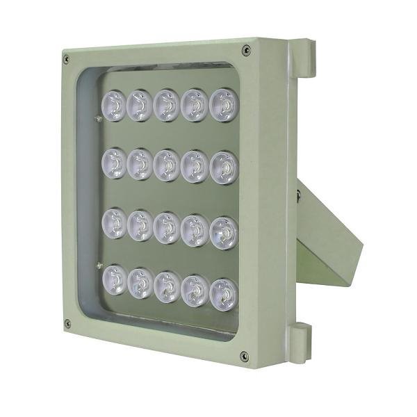 Infračervené světlo, venkovní, vodotěsné IP66, hliníková skříňka, napájení 12 V DC, dosah 100 - 160 m, úhel 60 st., příkon 46 W.