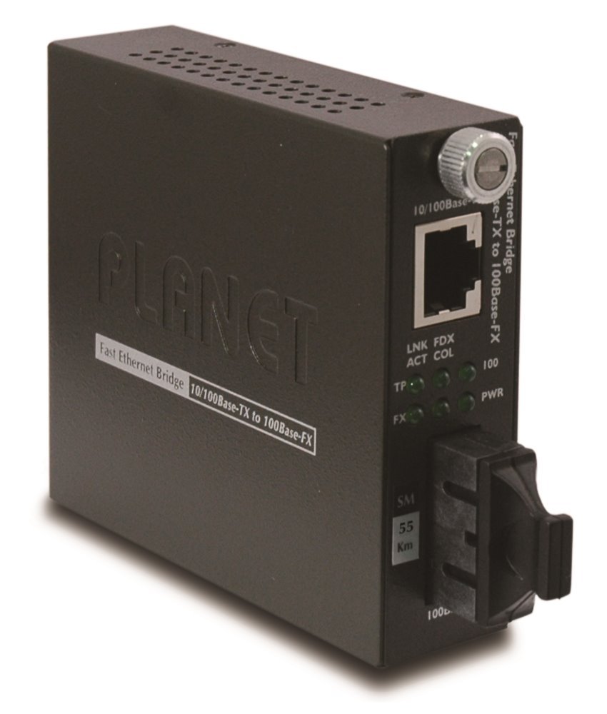 Fast Ethernet konvertor/přepínač 10/100Base-TX-100Base-FX (SC) 50km, full duplex, singlemode. Full duplex, bridge, auto-MDI/MDX. Při samostatném užití DIP-switche pro nastavení auto/force speed, full/half, LLCF, LLR.