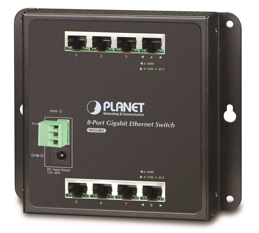 Gigabitový přepínač 8 portů 1000Base-T, instalace na zeď nebo na DIN, kovové provedení IP30, odolný vůči pádu a vibracím. ESD+EFT ochrany portů, duální napájení DC 12~48V, bez ventilátorů. Gigabitový 8- mi portový přepínač pro instalaci na stěnu nebo do rozvaděčů, konstrukce je odolná vůči pádu a vibracím včetně krytí IP30. Lze využít duálního napájení pro případ výpadku jednoho z DC zdrojů.