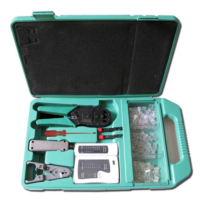 Sada pro instalací sítí v praktickém plastovém kufříku.