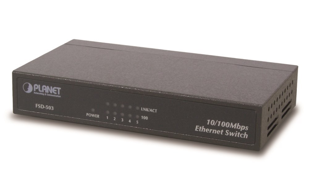 5portový přepínač 10/100Base-TX, automatická detekce 10/100Mbps, full duplex, desktop, kovová skříň, bez ventilátorů.