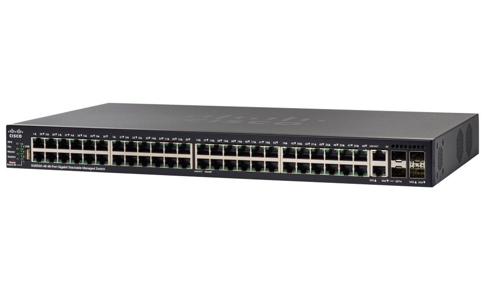 Počet portů: 48 x 1GbE RJ-45, 2 x 10GBase-T/SFP+ combo (uplink), 2 x 10GbE SFP+ (uplink)