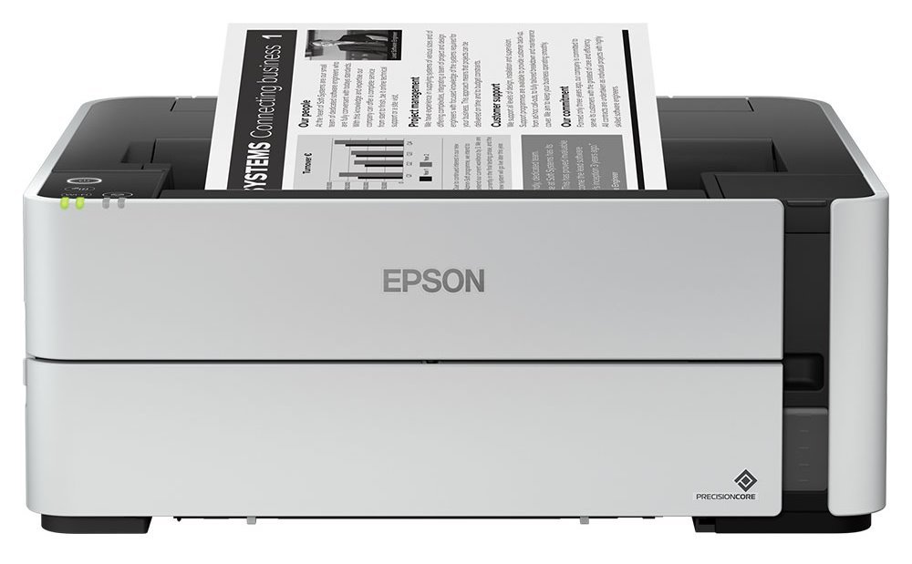 Černobílá tiskárna Epson EcoTank M1170 pro spolehlivý a současně úsporný tisk v kanceláři. Disponuje systémem opětovně doplnitelné inkoustové nádržky a umožní vám efektivně snížit provozní náklady oproti klasickým tonerovým kazetám. Současně se vyznačuje nízkou spotřebou energie.