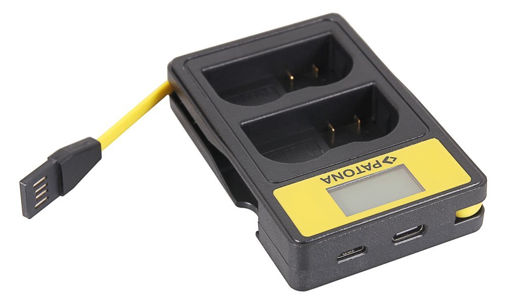 S nabíječkou Patona DUAL lze nabíjet současně 2 baterie najednou, bez ohledu na to, zda mají obě baterie stejnou kapacitu. Na LCD se zobrazuje aktuální stav nabití baterie. Nabíječky jsou vyráběny dle nejvyšších evropských standardů kvality a vyznačují se extrémně dlouhou životností. Nabíječku lze napájet skrze micro USB, USB-A či USB-C port.