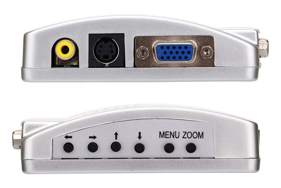 Plug & play převodník VGA na analogový PAL. Umožňuje připojit zobrazovací zařízení s cinch PAL/NTSC nebo S-Video vstupem k VGA výstupu. Podporuje rozlišení až 1024 x 768 a současný výstup na VGA a RCA/S-Video.