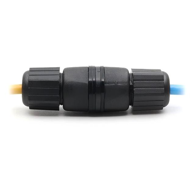 Stíněná RJ-45 spojka M22 pro Ethernetový kabel kategorie 5e ve vodotěsném krytí IP67, která umožňuje vodotěsný spoj kabelů instalovaných v exteriéru.