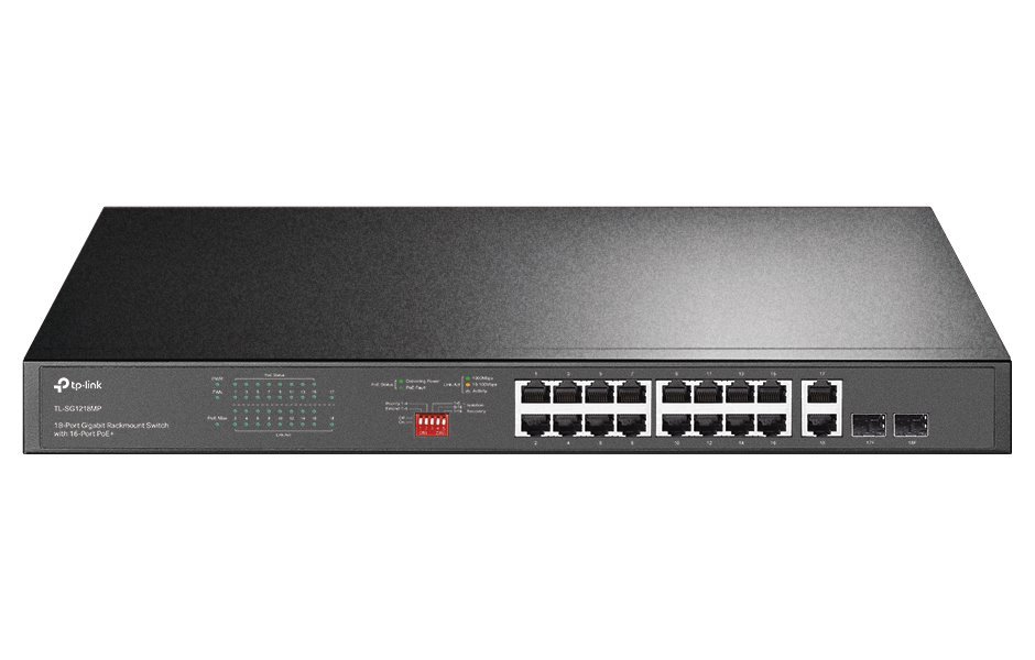 Počet portů: 16× GbE RJ-45 port, 2× Gigabit kombo RJ-45/SFP