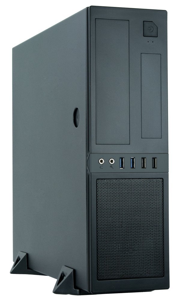 Skříň formátu Mini Tower nabízí jednu 2,5" pozici pro SSD disk a jednu 3,5" pozici pro pevný disk. Disponuje také dvěma externími pozicemi, jedna je formátu 5,25" a druhá formátu 3,5". Na předním panelu se nachází dva USB 3.0 porty, dva USB 2.0 porty, sluchátkový výstup a audio vstup pro mikrofon. Ve skříni je dostatek prostoru pro chladič CPU do výšky až 85 mm a grafickou kartu o délce až 195 mm. Skříň je dodávána s 300 W zdrojem GPF-300P.