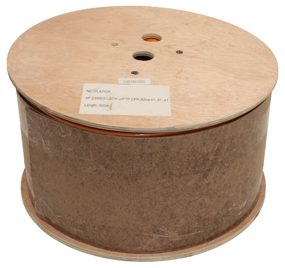 Kabel kategorie Cat6A, třída EA, 500 MHz, 4pár, drát, FTP, každý pár je stíněný zvlášť, ripcord, zemnící vodič, balení 500 m na dřevěném bubnu, oranžová barva, cena za balení.