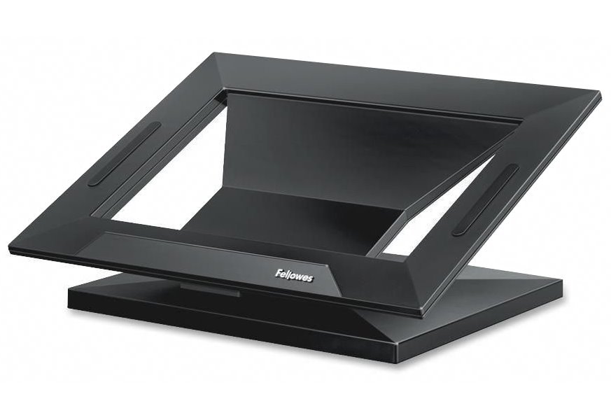 Podstavec pro notebooky s úhlopříčkou až 17" umožňuje nastavení úhlu sklonu a výšky ve čtyřech stupních. Podstavec tak pomáhá redukovat napětí zad a udržovat správné držení těla. Otvor v podstavci zajistí dostatečné proudění vzduchu a prostor pro správu kabeláže.