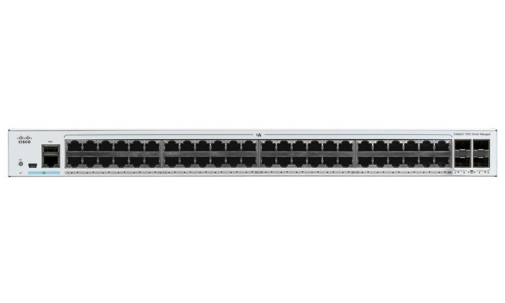 Počet portů: 48x RJ-45, 4x SFP+, 1x USB, 1x USB mini-B, 1x konzolový RJ-45