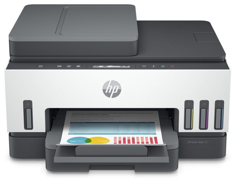 Multifunkční tiskárna HP Smart Tank 750 pro zvýšení produktivity ve firemní kanceláři. Model v sobě integruje tiskárnu, kopírku a skener, takže do každodenních úkolů se můžete pustit jen s jediným zařízením. Díky bezdrátovému připojení a podpoře mobilního tisku toho zvládnete více a mnohem pohodlněji. Nechybí ani funkce automatického oboustranného tisku, čímž šetříte čas a peníze při tisku vícestránkových dokumentů.