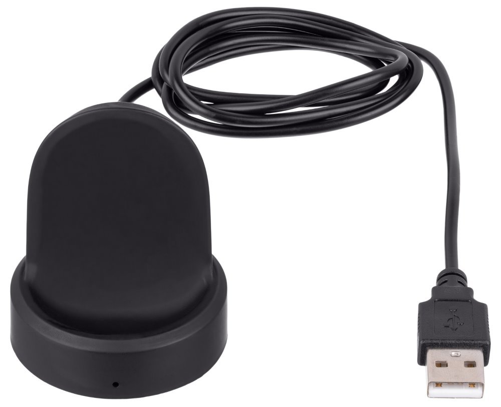 Bezdrátový nabíjecí stojánek pro chytré hodinky Samsung Gear S2, S3 a Galaxy Watch. Zabudované magnety zabraňují pohybu chytrých hodinek a chrání je před náhodným odpojením během nabíjení. Přiložený kabel je na jedné straně zakončen univerzálním konektorem USB, díky kterému si můžete vybrat, zda jej připojíte k síťovému adaptéru, powerbance, nebo notebooku. Na druhé straně má kabel konektor micro USB odpovídající zásuvce umístěné v nabíječce. Ve spodní části stojánku se nachází protiskluzová gumová podložka zvyšující přilnavost stojánku. Vestavěná LED kontrolka mění barvu na červenou, modrou a zelenou v závislosti na stavu nabíjení. Jediné požadavky na zdroj napájení jsou 5 V / 1 A.