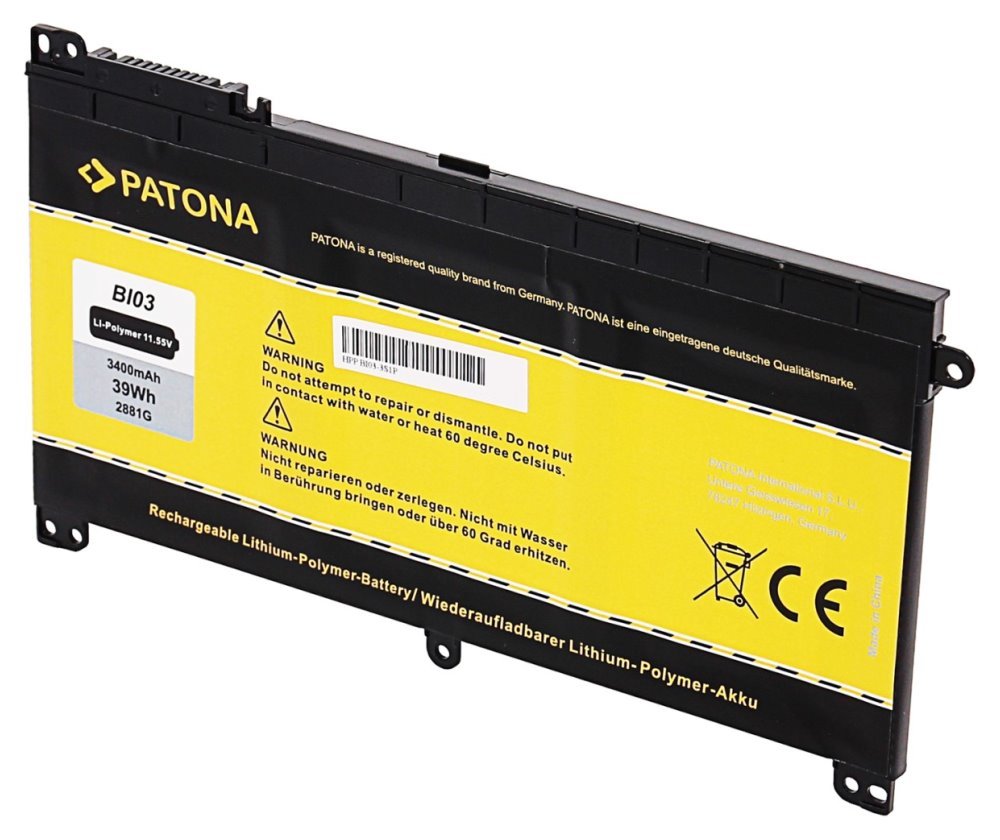 Nahrazuje baterie: BI03XL, B103XL, HSTNN-UB6W, HSTNNUB6W, TPN-W118, TPNW118, 843537-541, 843537541, 844203-850