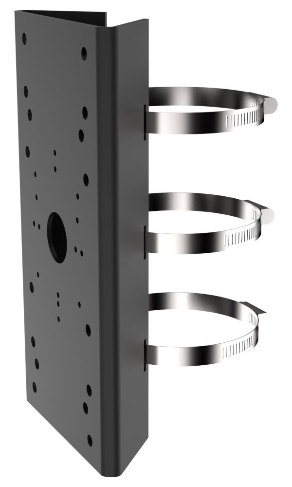 Držák pro montáž kamer na sloup/trubku, zatížitelnost 10 kg. Použitelné na trubku průměru 67 až 127 mm. Trubka musí unést více než 3krát větší hmotnost, než je celková hmotnost kamery a držáku.
