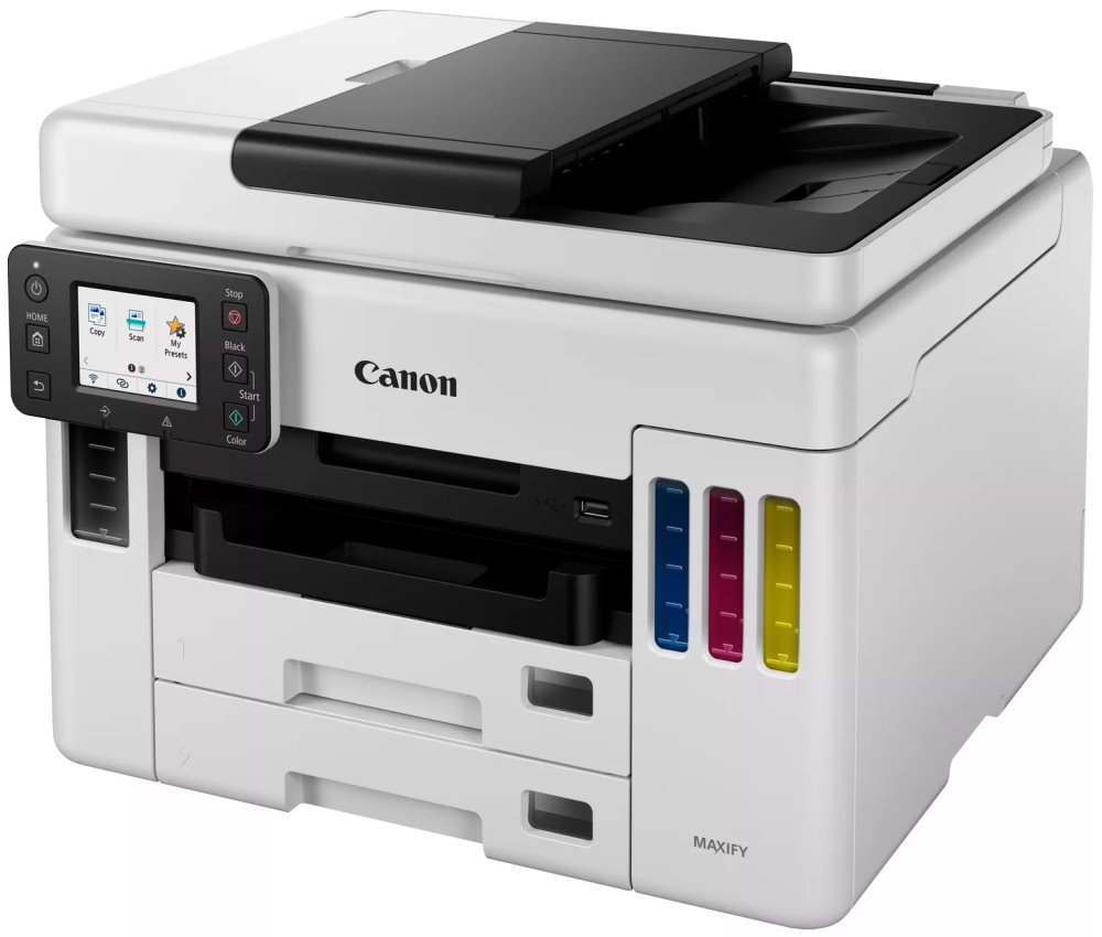 Multifunkční barevná inkoustová tiskárna formátu A4 nabízející vysoké rozlišení tisku až 1200 × 600 obrazových bodů při rychlosti 24 stran za minutu černobíle a 15,5 strany za minutu barevně. Disponuje vestavěným skenerem s rozlišením 1200 × 1200 DPI. Potěší také automatický oboustranný tisk, zásobníky na papír s celkovou kapacitou 600 listů či automatický podavač dokumentů s kapacitou 50 listů. Ovládání tiskárny je velmi snadné díky 2,7" dotykovému displeji a ovládacím prvkům na panelu. Tiskárnu je možné připojit jak drátově přes USB nebo síťový Ethernet port, tak bezdrátově skrze Wi-Fi. Pro rychlý tisk z médií je připraven USB host port. Předností je také skenování a tisk z a do cloudového úložiště pomocí služby PIXMA Cloud Link přes aplikaci Canon PRINT. Skenování přímo do cloudu a do e-mailu je k dispozici pouze pro uživatele originálních inkoustů Canon. Tiskárnu lze také využít jako fax.