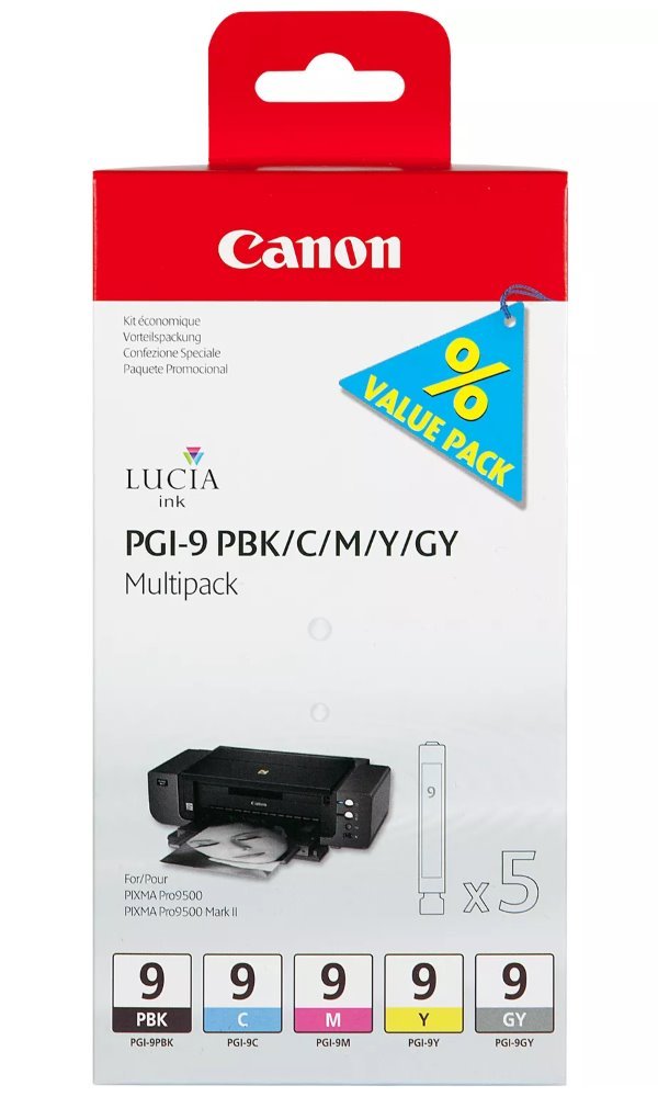 Canon PGI-9 multipack 5 barev Značkové náplně pro vaši inkoustovou tiskárnu Canon zajistí maximální kvalitu tisku. ZÁKLADNÍ SPECIFIKACE Pro tiskárny: Canon PIXMA Pro9500 Mark II, Pro9500, iX7000 Barva: foto černá,... více
