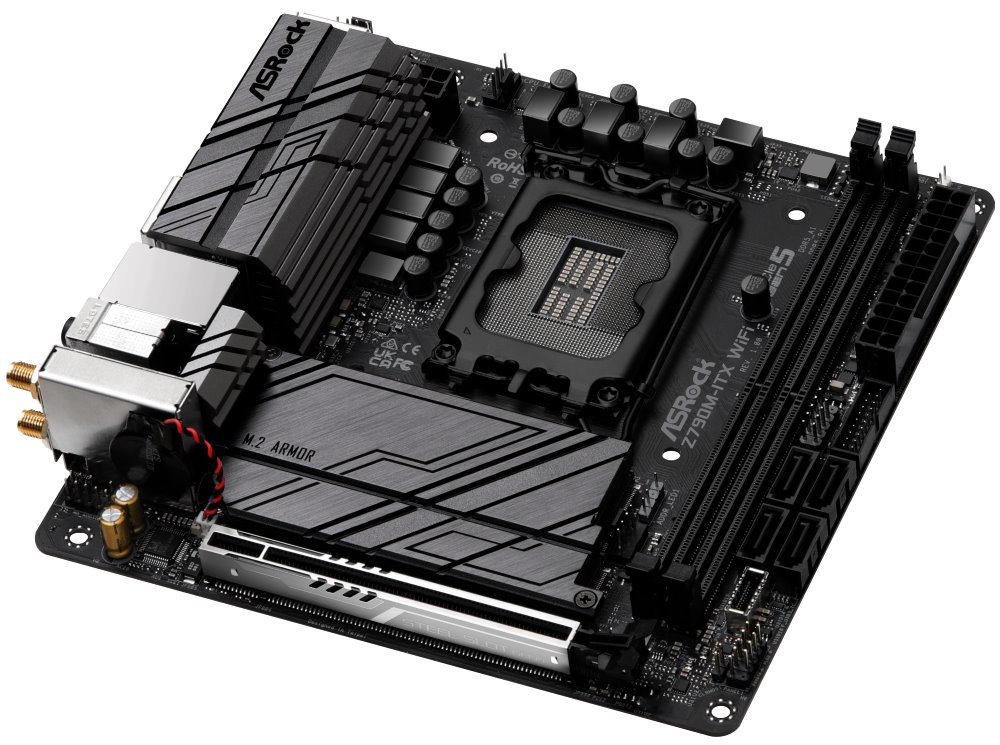Základní deska ASRock Z790M-ITX WIFI, která svým návrhem utáhne výkon 12. a 13. generace procesorů Intel. Design Dr.MOS zajišťuje optimalizovaný přísun proudu a jeho monitoring pro přesné napájení a plynulý výkon procesoru. Dvojice paměťových slotů pojme až 64 GB pamětí typu DDR5. Rozhraní PCIe typu SMT zlepšuje signál a stabilitu při vysoké rychlosti.