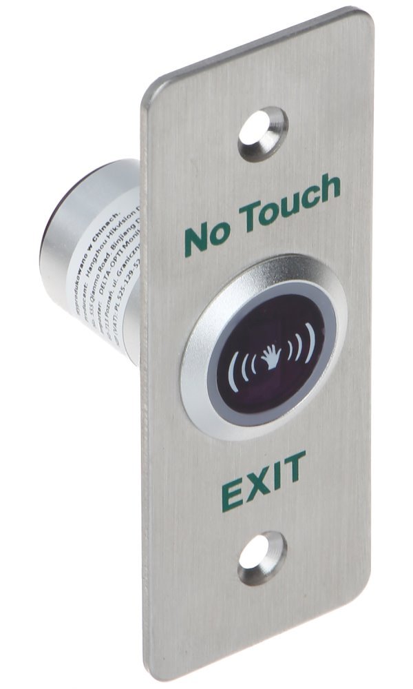 Bezdotykové odchodové tlačítko v nerezovém provedení s LED podsvícením. Snímá pohyb ruky na vzdálenost 4 až 12 cm.
