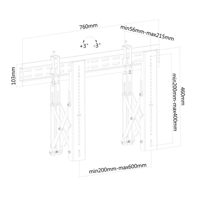 Fixní držák na zeď pro montáž monitorů a televizí s úhlopříčkou 32" až 75" a hmotností až 50 kg. Tento nástěnný držák je speciálně vyroben pro použití ve videostěnách.