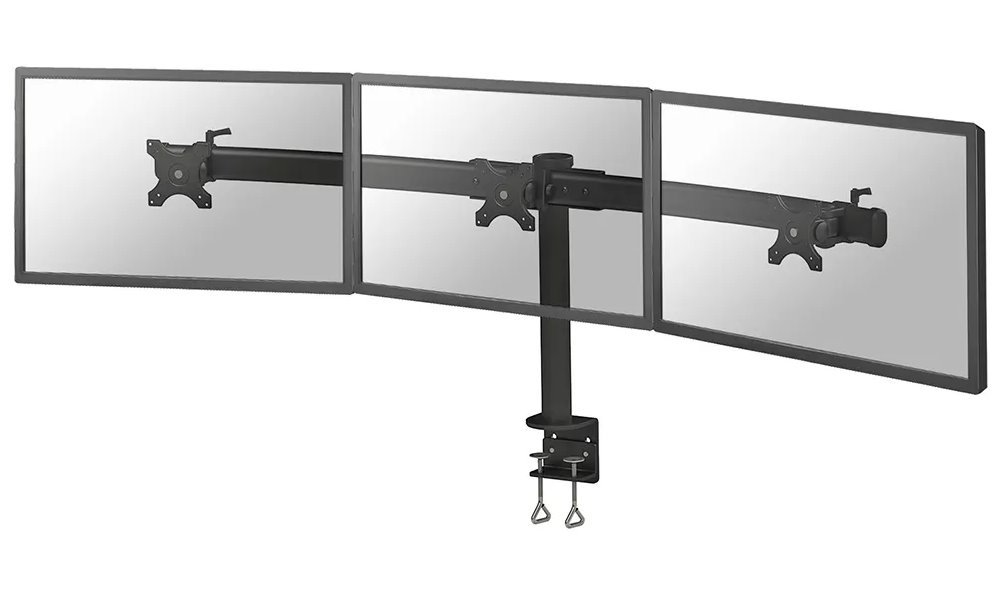 Flexibilní stolní VESA držák pro 3 ploché LCD monitory o velikosti 10" až 27" a maximální nosnosti do 24 kg (3× 8 kg). Univerzální technologie naklápění, otáčení a rotace umožňuje optimální nastavení. Veškerý instalační materiál je součástí výrobku.