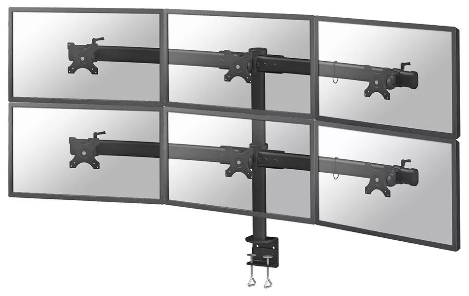 Flexibilní stolní VESA držák pro 6 plochých LCD monitorů o velikosti 19" až 27" a maximální nosnosti do 48 kg (6× 8 kg). Univerzální technologie naklápění, otáčení a rotace umožňuje optimální nastavení. Veškerý instalační materiál je součástí výrobku.