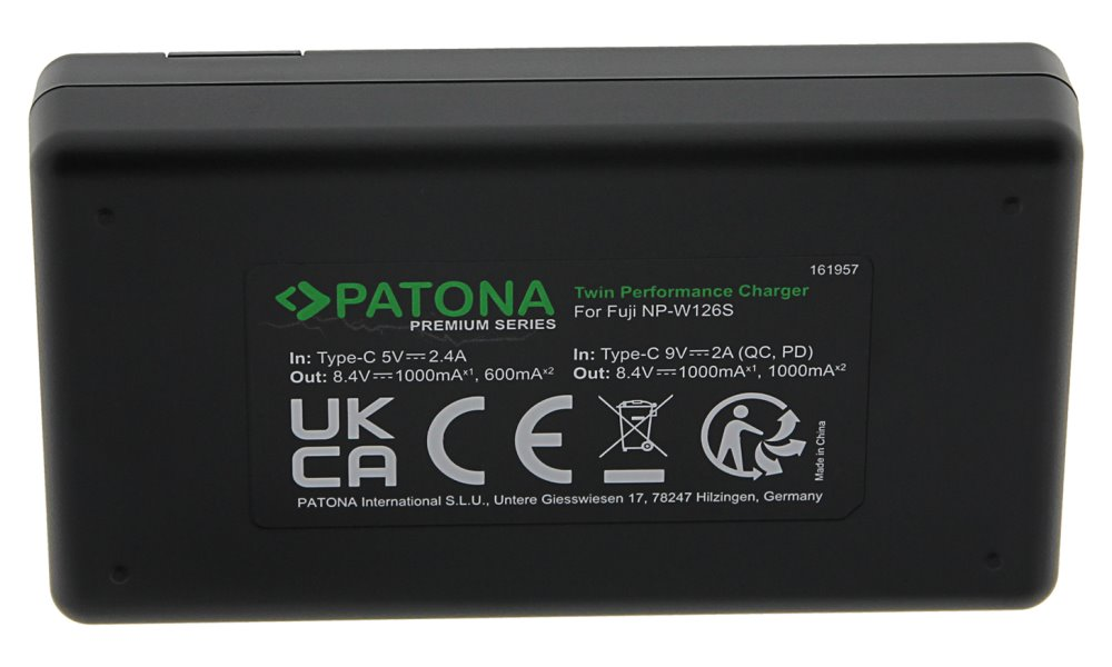 S rychlonabíječkou Patona DUAL lze nabíjet současně 2 baterie najednou, bez ohledu na to, zda mají obě baterie stejnou kapacitu. Nabíječky jsou vyráběny dle nejvyšších evropských standardů kvality a vyznačují se extrémně dlouhou životností. Nabíječku lze napájet skrze USB typ C port.