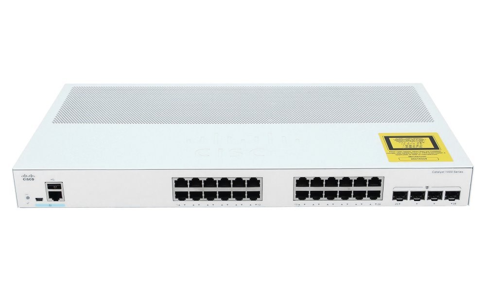 Počet portů: 24x RJ-45, 4x SFP, 1x USB, 1x USB mini-B, 1x konzolový RJ-45