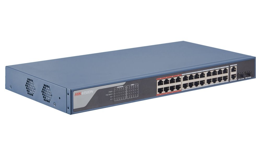 Smart (managed) PoE+ switch pro napájení IP kamer či jiných zařízení s podporou PoE. Nabízí 24x PoE/PoE+ výstup 802.3af/at (max. 30 W/port) s celkovým výkonem až 370 W, přepěťovou ochranu do 6 kV pro PoE porty a kapacitu 8,8 Gbps. Switch navíc disponuje extend módem pro přenos dat a napájení až na 300 m při 10 Mb/s.