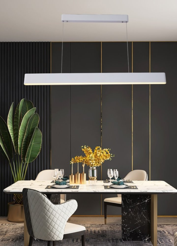 LED svítidlo, závěsné, pro chytrý dům, stmívatelné, 120cm, CCT40W, RGB 18W, Zigbee 3.0, TUYA, bílé