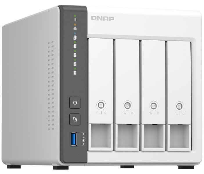 Výkonné a snadno použitelné síťové úložiště pro synchronizaci, vzdálený přístup a domácí zábavu. Základem tohoto zařízení je čtyřjádrový procesor, taktovaný na 2,0 GHz, doplněný o 4 GB operační paměti. Pro ukládání dat jsou připraveny čtyři pozice pro 3,5" nebo 2,5" disky, které lze vyměňovat za provozu. Síťové připojení zajišťují dva RJ-45 porty a k dispozici jsou také tři USB konektory. TS-433 slouží jako zabezpečený privátní cloud a podporuje ochranu uživatelských účtů, blokování IP, dvoufázové ověření, šifrování přístupu a další.