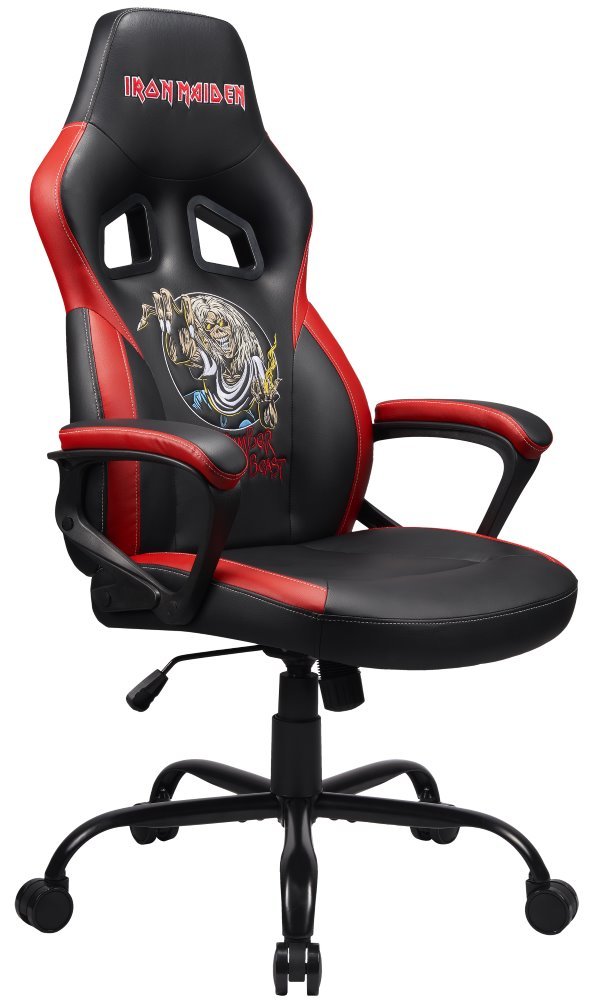 Stylová herní židle pro fanoušky kapely Iron Maiden poskytuje dokonalou oporu a pohodlí i při dlouhém sezení u počítače. Je vyrobena z kvalitní syntetické kůže, která je příjemná na dotek, a navíc se snadno čistí. Pro celkové nastavení výšky židle je k dispozici plynový píst třídy 3, který vyniká dlouhou trvanlivostí. Nosnost židle je až 120 kg.