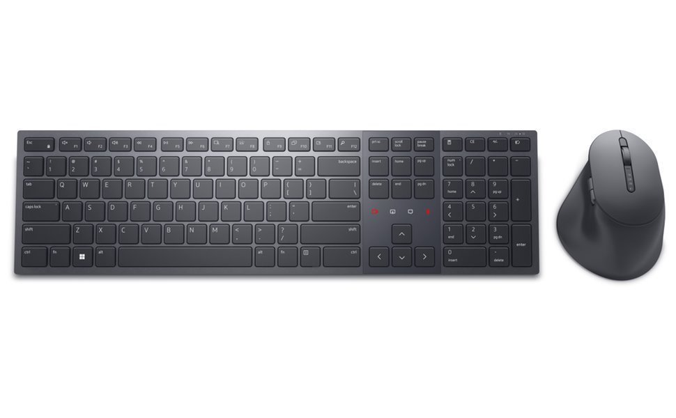 Klávesnice a myš Dell KM900 podporuje bezdrátové připojení, které je realizováno pomocí rozhraní Bluetooth nebo USB přijímač s 2,4 GHz technologií. Díky tomu zajišťuje připojení až se 3 zařízeními a snadné přepínání mezi nimi. S podporou softwaru Dell Peripheral Manager rychle a jednoduše vyladíte klávesnici podle svých představ, aby přesně odpovídala vašeho pracovnímu nasazení. Pomocí programových zkratek okamžitě otevřete potřebné aplikace, samozřejmostí je přítomnost numerické části nebo multimediálních kláves.