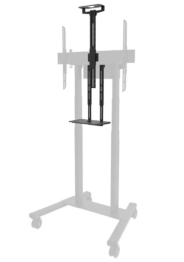 Police o šířce 36 cm a držák webkamery pro mobilní stojan FL55-875BL1 a nástěnný držák WL55-875BL1. Univerzální polici lze instalovat na přední i zadní stranu držáku. Balení obsahuje také adaptér pro zařízení Bose VB1 a VB-S.