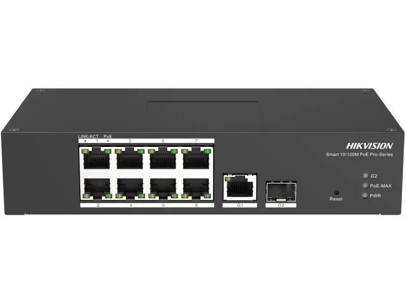 Kompaktní spravovatelný (managed) 10portový PoE switch pro napájení IP kamer či jiných zařízení s podporou PoE. Nabízí PoE výstup 8× 802.3af/at (max. 30 W/port) s celkovým výkonem až 110 W a kapacitu 5,6 Gbps.