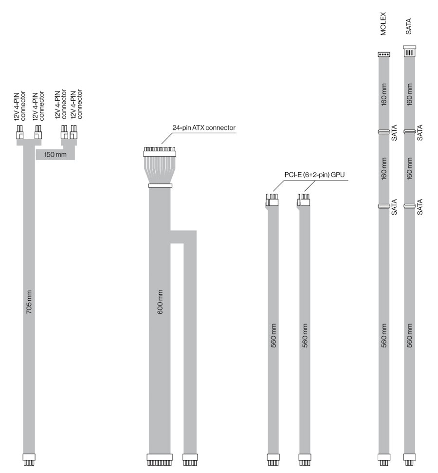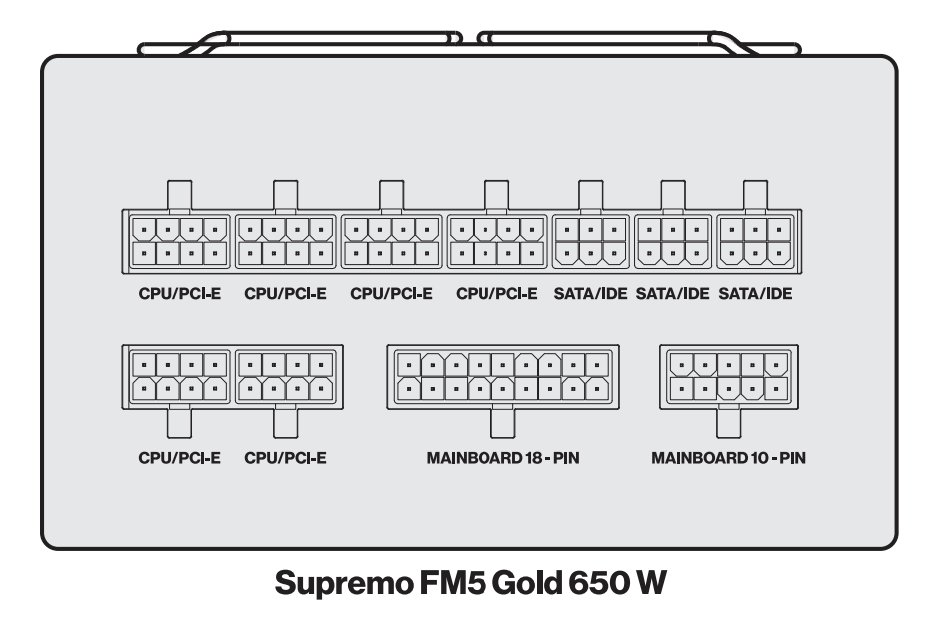 Napájecí zdroj o výkonu 650 W je osazen tichým, 120 mm velkým ventilátorem. Modulární kabeláž ušetří cenné místo ve skříni. Účinnost zdroje je 80PLUS Gold.