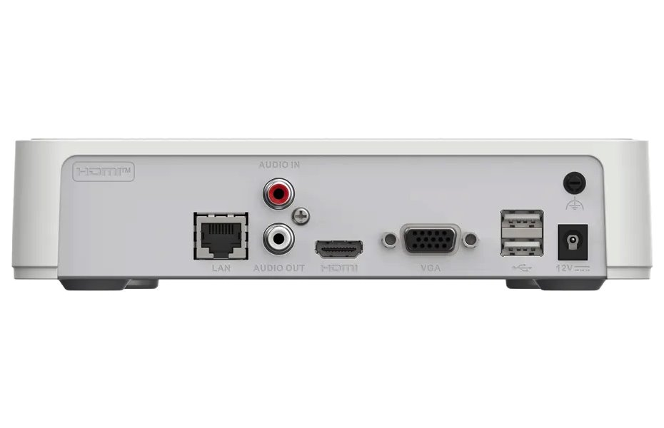 Porty: 1× HDMI 4K výstup, 1× VGA Full HD výstup, 2× USB 2.0, 1× RJ-45, 1× audio vstup, 1× audio výstup