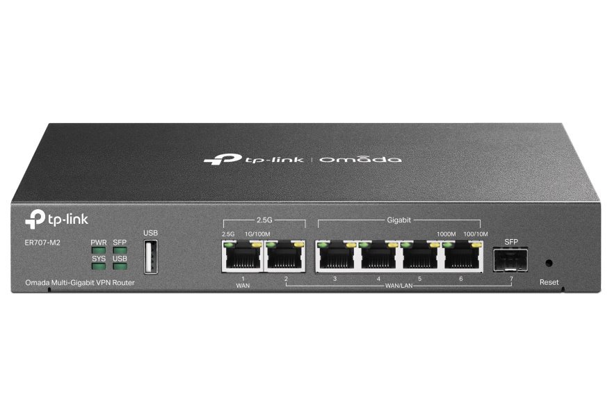 Rozhraní: 1× 2,5G RJ-45 WAN, 1× 2,5G RJ-45 LAN/WAN, 4× GbE RJ-45 LAN/WAN, 1× 1G SFP LAN/WAN, 1× USB 2.0