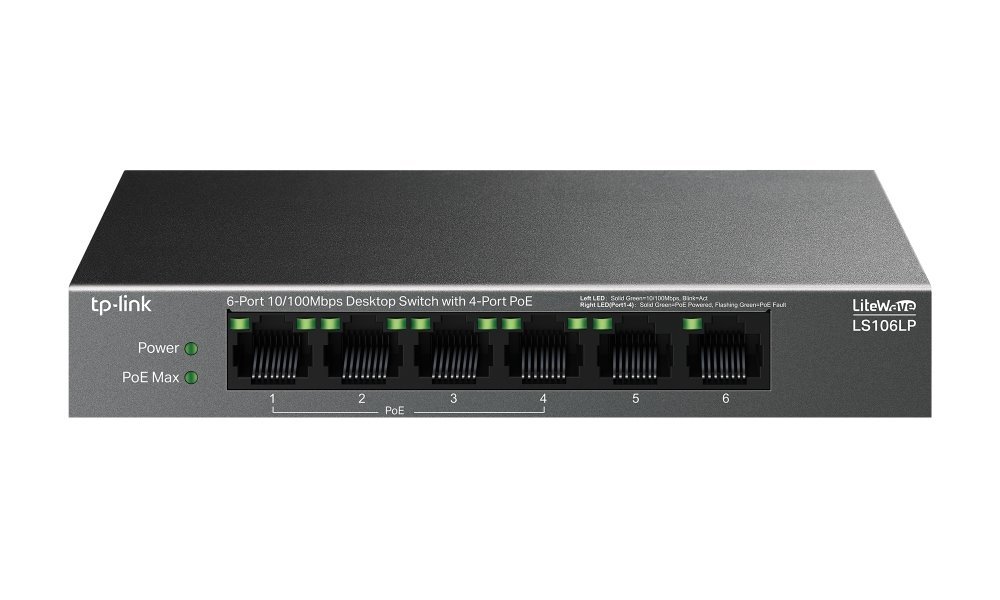 6portový stolní switch s podporou PoE představuje snadný a cenově dostupný způsob rozšíření vaší kabelové sítě. Switch se navíc může pochlubit podporou AUTO-MDI/MDIX a funkcí řízení toku dat (flow control).
