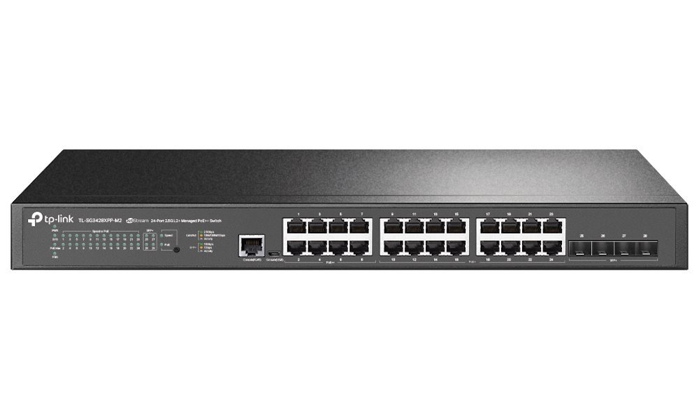 Počet portů: 24× 2,5G RJ-45, 4× 10G SFP+, 1× konzolový port RJ-45, 1× konzolový port micro USB