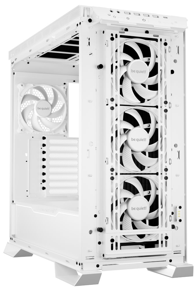 Skříň Be quiet! DARK BASE PRO 901 Window se vyznačuje také odnímatelnou horní a přední částí. Zabudovaný rozbočovač pro ventilátory oceníte při stavbě moderního PC systému, který vyžaduje pořádné ochlazení. Trojice předinstalovaných ventilátorů Silent Wigs 4 zajistí precizní proudění vzduchu. Design lopatek produkuje takový tlak vzduchu, aby byl zajištěn potřebný výkon při zachování nízké hladiny hluku.