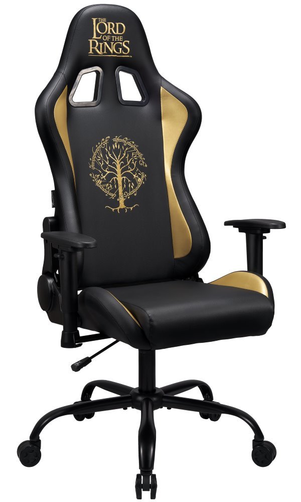 Stylová herní židle pro fanoušky série Lord of the Rings poskytuje dokonalou oporu a pohodlí i při dlouhém sezení u počítače. Je vyrobena z kvalitní syntetické kůže, která je příjemná na dotek, a navíc se snadno čistí. Židle disponuje úhlem sklonu až 135° a má výškově nastavitelné opěrky rukou s rotací. Pro celkové nastavení výšky židle je k dispozici plynový píst třídy 3, který vyniká dlouhou trvanlivostí. Nosnost židle je až 130 kg.
