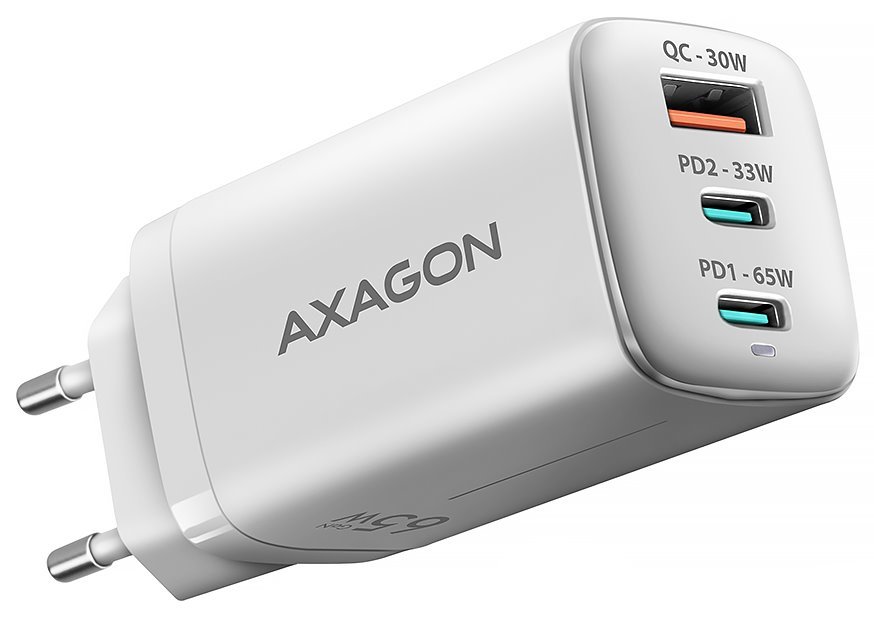 Kompaktní cestovní nabíječka do sítě pro rychlé nabíjení až tří mobilních zařízení současně. Díky celkovému výkonu 65 W nabíječka dobíjí notebooky, telefony a další zařízení nejvyšší možnou rychlostí. Pro tyto účely jsou k dispozici dva porty USB-C s výkonem až 65 W a 33 W. Dalším kladem tohoto adaptéru je dodatečný výstup USB, podporující technologii rychlého nabíjení Quick Charge 3.0, který lze jednoduše použít pro nabíjení většiny zařízení výkonem až 30 W. Funkce AIC rozpozná připojené zařízení a automaticky zvolí optimální rychlost nabíjení. Nabíječka podporuje protokoly PD 65 W (Power Delivery), USB Battery Charging 1.2, Apple Fast Charge, Huawei SCP/FCP, Quick Charge 1.0/2.0/3.0/4+, Samsung AFC/SFC a MediaTek PE+/PE+ 2.0. Kombinace malých rozměrů, dosažených pomocí GaN technologie, a širokého rozsahu vstupního napětí, dělá z této nabíječky ideálního pomocníka na cesty. Samozřejmostí je pak ochrana proti přetížení, přepětí, přehřátí a zkratu na výstupu.